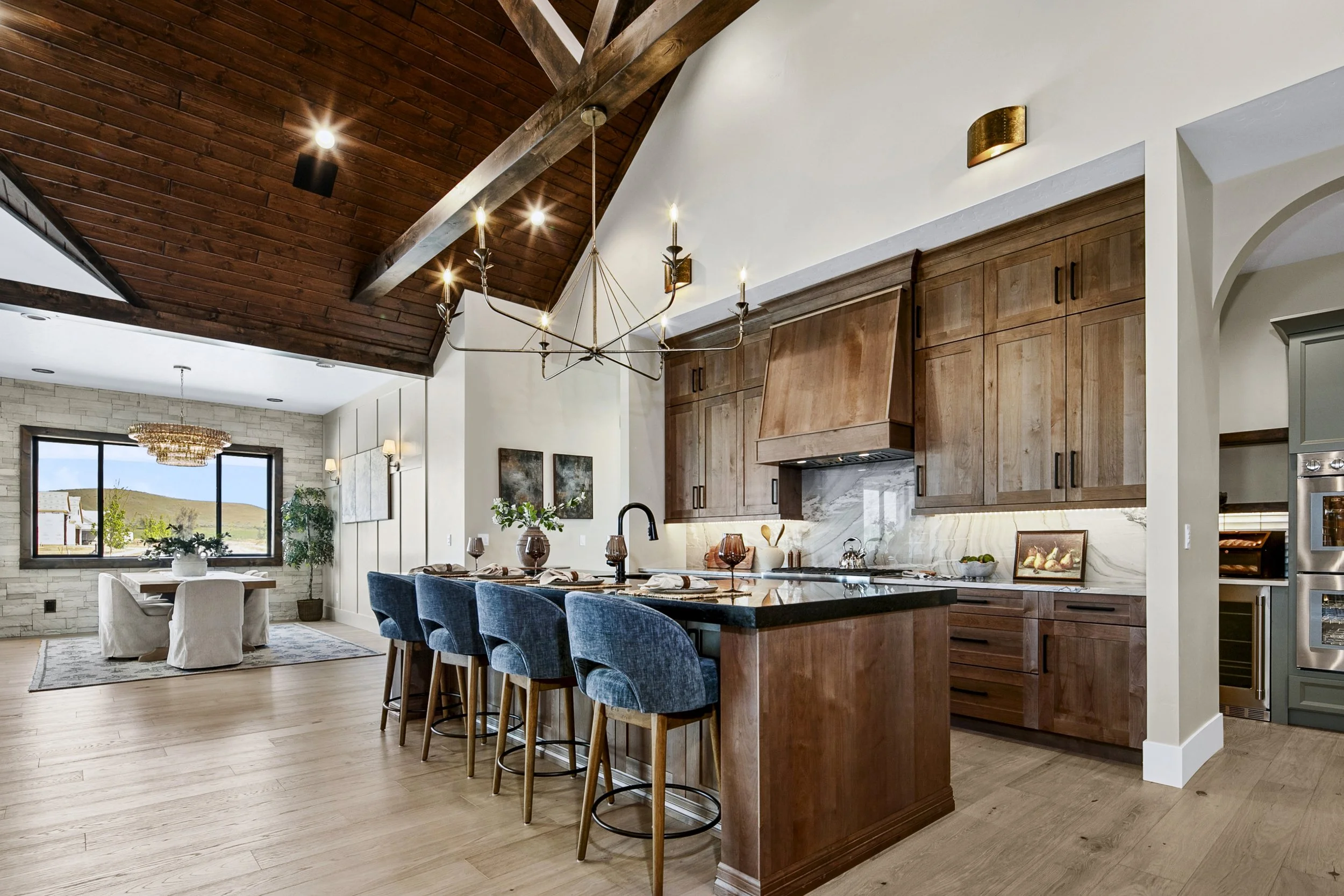 Step into luxury with this one-of-a-kind custom home thoughtfully designed with premium finishes and unique features throughout. The living room showcases a soaring 24’ fireplace, built-in entertainment center, and Sub-Zero wine fridge perfect for elegant living and entertaining. The gourmet kitchen includes custom cabinets, premium Wolf appliances, a large pantry, and sleek finishes throughout.
